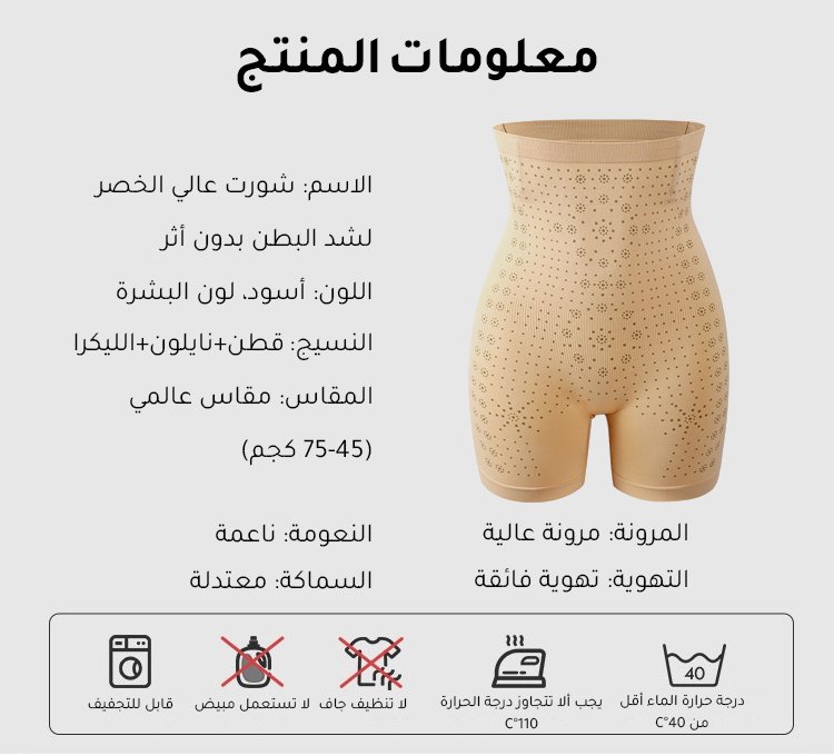 شورت إيطالي عالي الخصر لشد البطن ورفع الورك بدون أثر